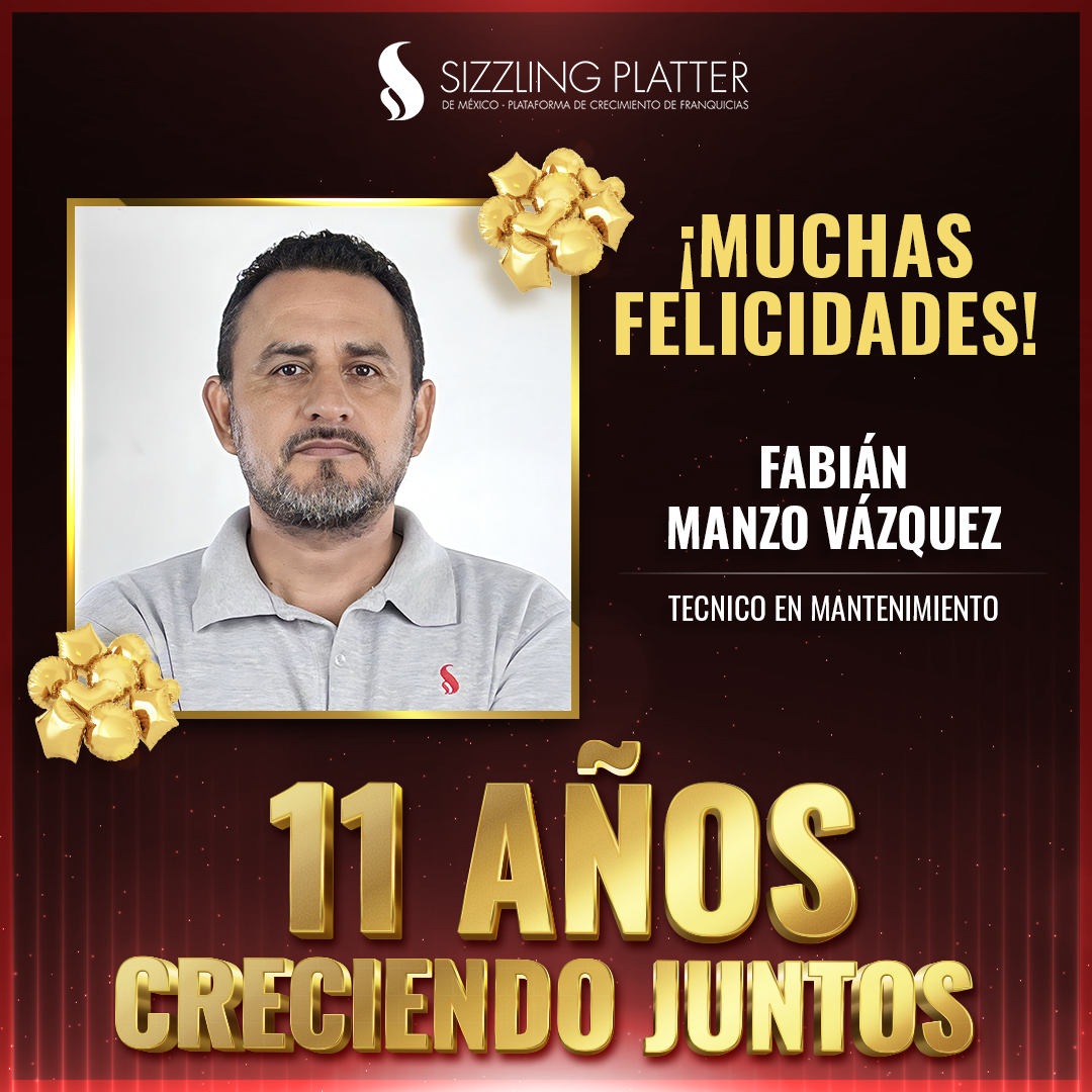 En Sizzling Platter México celebramos con orgullo a todos los colaboradores que durante los meses de septiembre y octubre de 2025 cumplen un año más formando parte de esta gran familia.