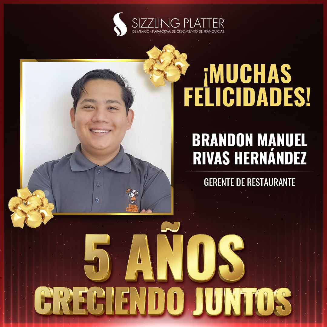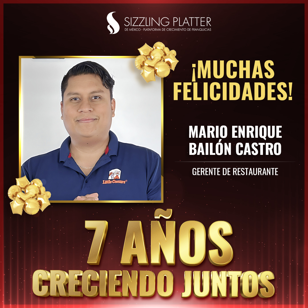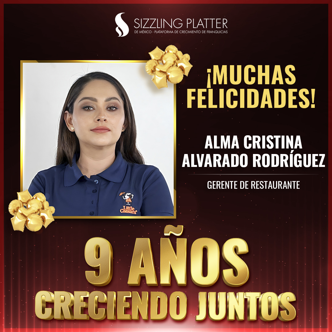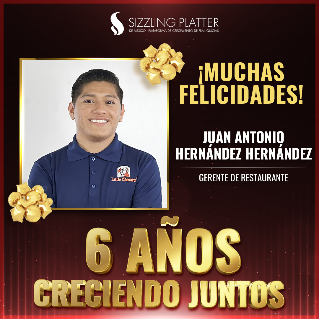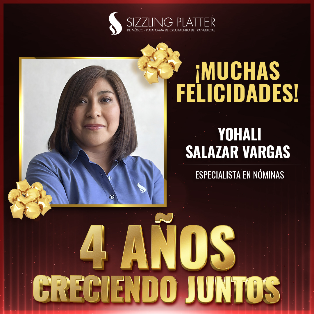 ¡Felicidades a nuestros colaboradores que celebran su aniversario en Sizzling Platter México! 🎉🍕